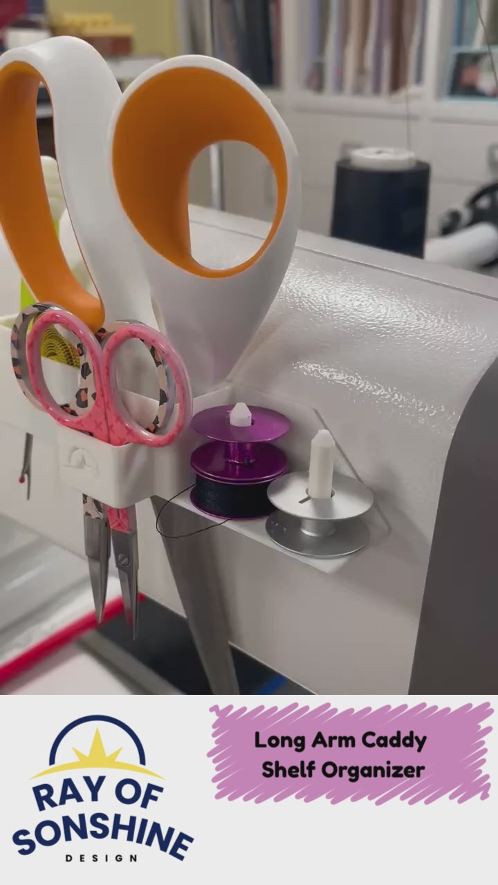 Long Arm Caddy Shelf Organizer for Scissors, Bobbin, Measuring Tape, Seam Picker - Quilting Tool